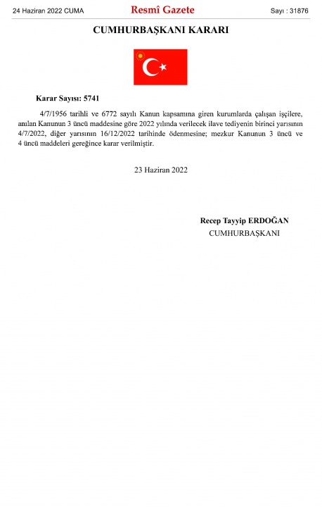 İlave Tediye tarihleri; 24 Haziran 2022 tarih ve 31876 sayılı Resmi Gazete'de yayımlandı...